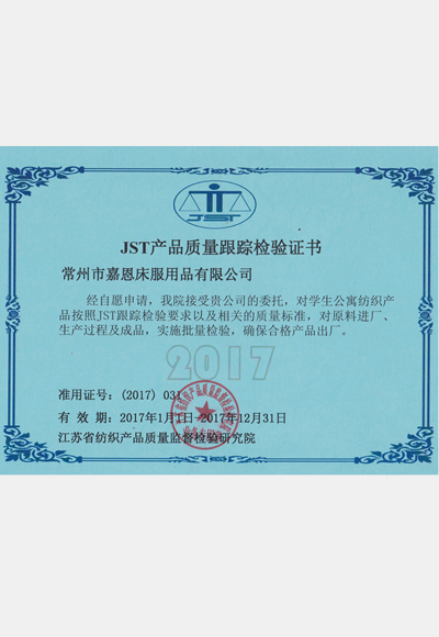 JST產品質量跟蹤檢驗證書